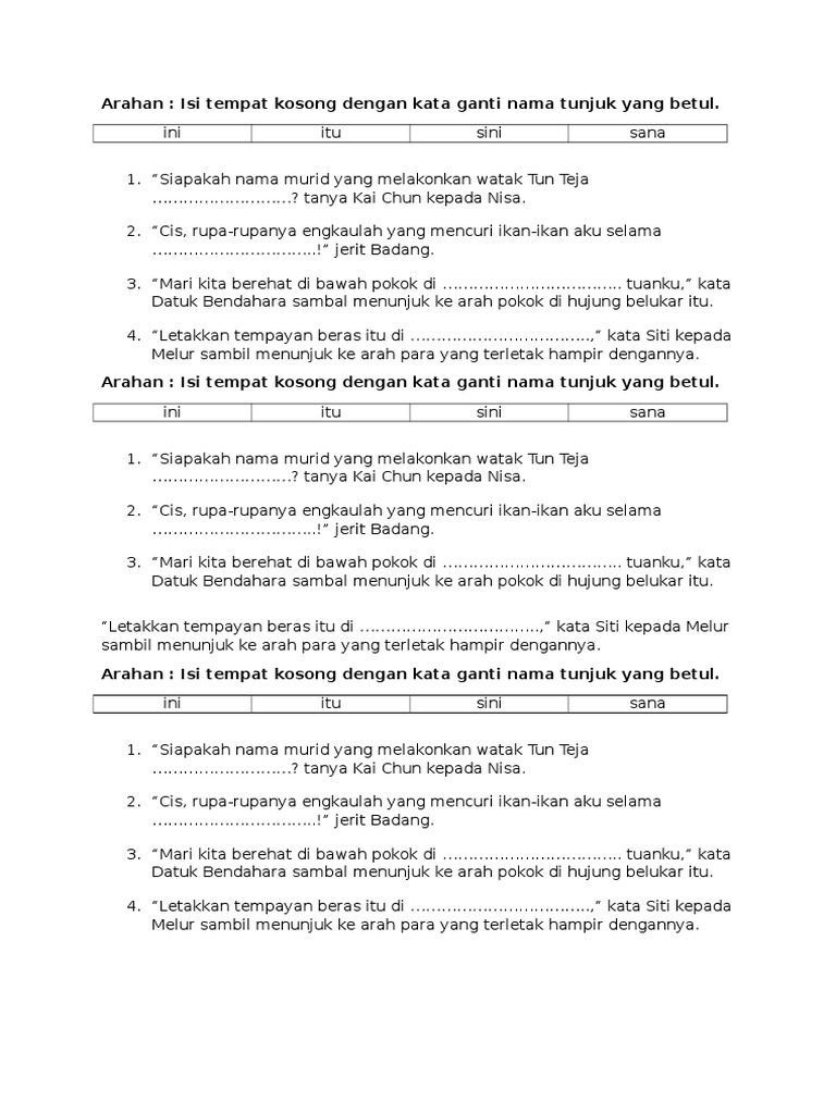 Latihan Kata Ganti Nama Tunjuk Pdf